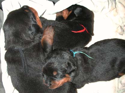 le mâle (le noeud noir) et ses 2 surs, 1 semaine plus tard!